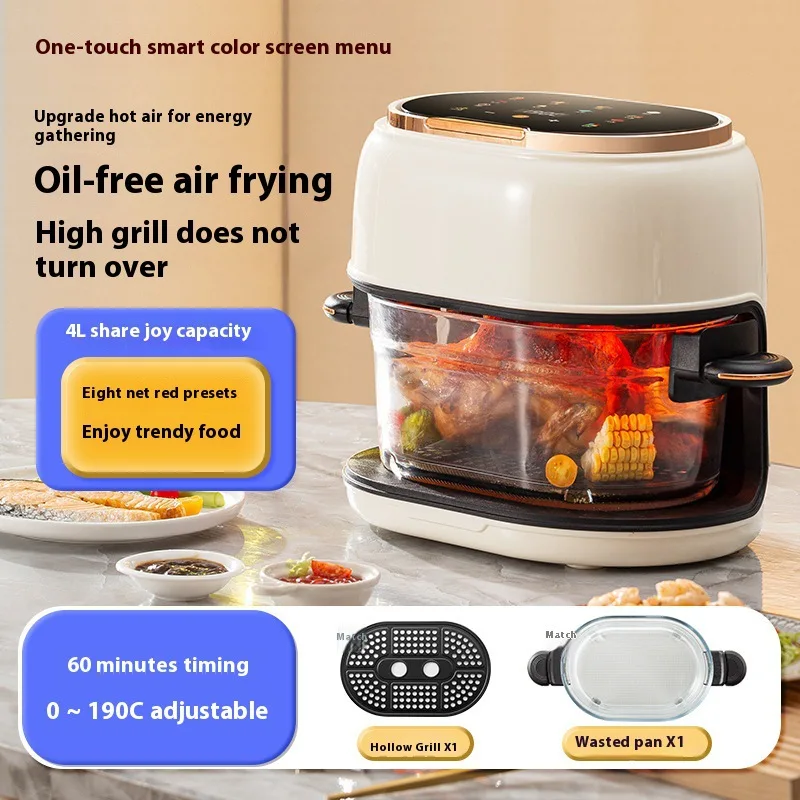Enjoy healthier cooking with this 4L large capacity glass air fryer.