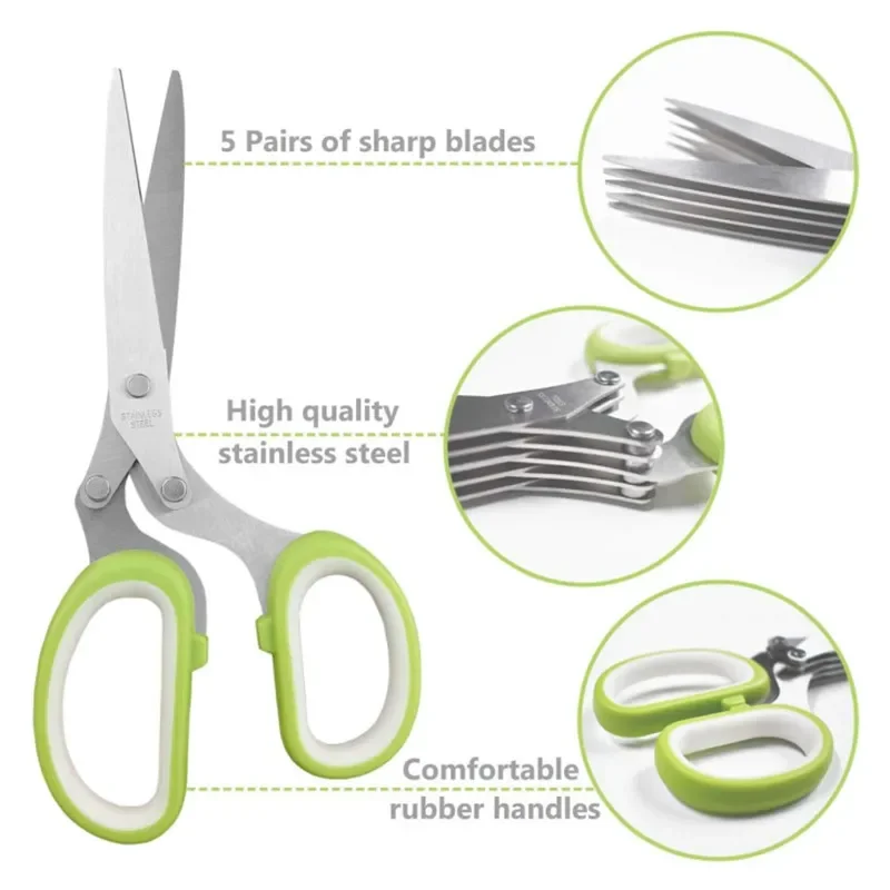 Make food preparation faster with these multifunctional 5-layer stainless steel kitchen scissors.