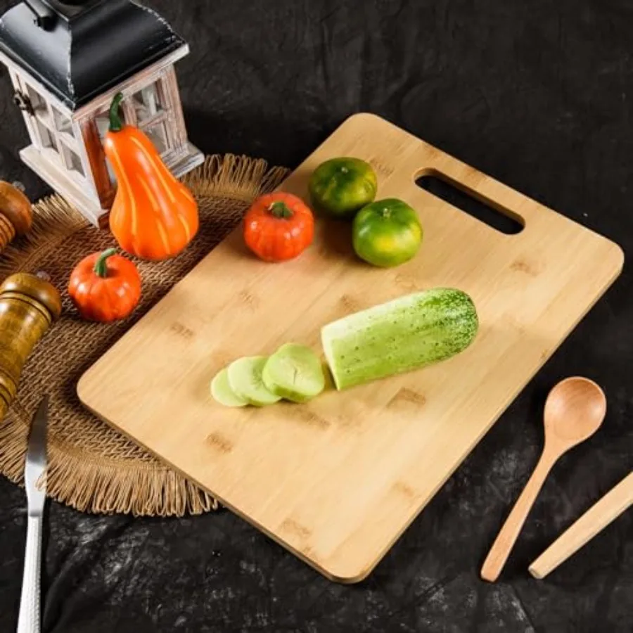The smooth bamboo surface is gentle on knives and easy to clean.