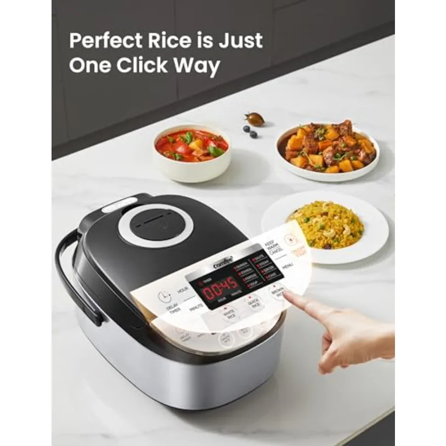 Cook perfect rice every time with this advanced Fuzzy Logic Rice Cooker designed for precision and convenience. It can prepare up to 12 cups of cooked rice, making it ideal for families and gatherings. The smart fuzzy logic technology automatically adjusts cooking settings for optimal results. Its non-stick inner pot ensures easy serving and quick cleanup after every use. Designed with portability in mind, it’s easy to move and store when needed. The 24-hour timer function allows you to plan meals ahead with ease. This versatile cooker can handle different types of rice and grains effortlessly. User-friendly controls make it simple for anyone to operate. Built for durability, it’s perfect for daily kitchen use. Enjoy consistent, fluffy, and delicious rice with minimal effort.