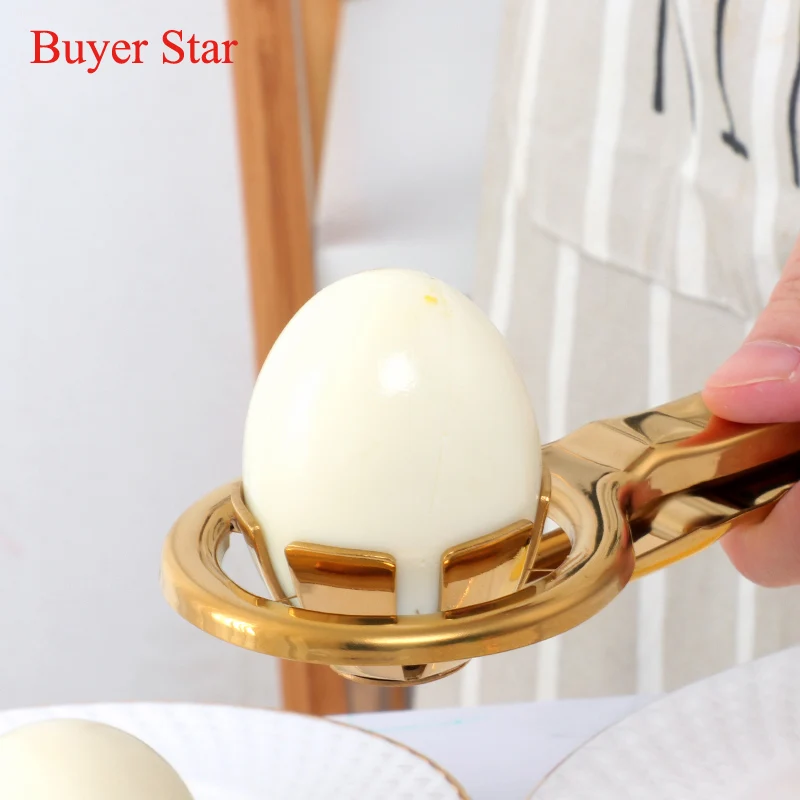 This stainless steel egg cutter is designed for quick and even slicing of cooked eggs.