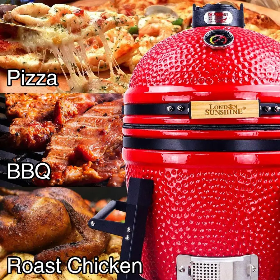 Experience traditional charcoal cooking with this Kamado Charcoal Grill and Smoker designed for exceptional performance. The ceramic body provides excellent heat retention for consistent and efficient cooking. Its versatile design allows you to grill, smoke, roast, and bake with ease. Equipped with durable stainless steel grates for reliable and long-lasting use. The 15-inch cooking surface is perfect for preparing a variety of meals. Mounted on a tall stand, it offers comfortable cooking height and stability. The vibrant red finish adds a bold and stylish look to any outdoor space. Ideal for backyard BBQs, patios, and outdoor gatherings. Precise airflow control helps you manage temperature effortlessly. Enjoy rich, smoky flavors and authentic grilling with this premium kamado grill.