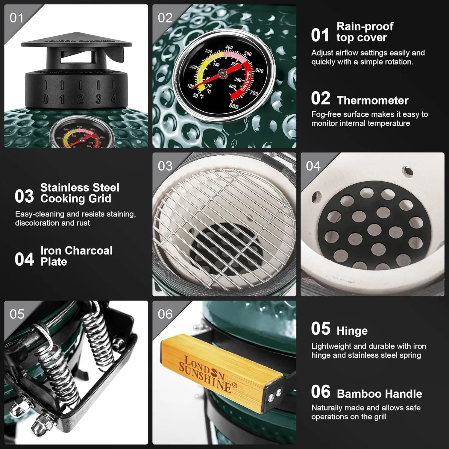 Experience premium outdoor cooking with this upgraded 13-inch ceramic kamado grill.
