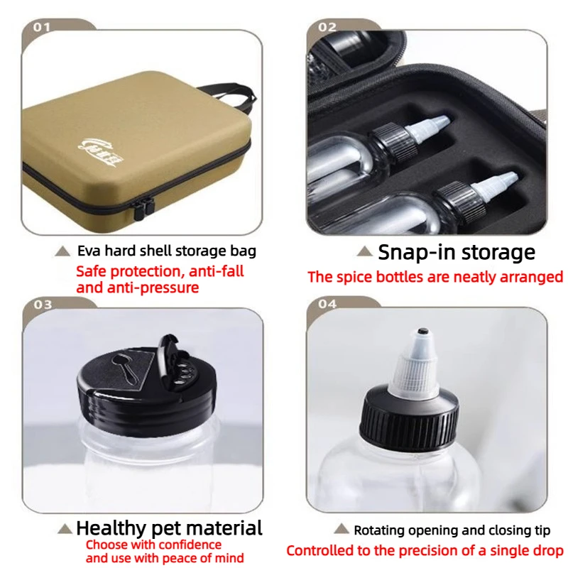 This portable seasoning bottle set is designed for convenient outdoor cooking and travel use.