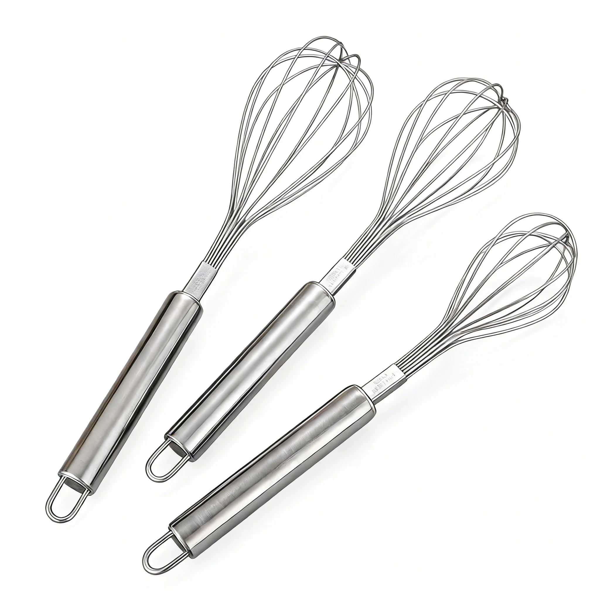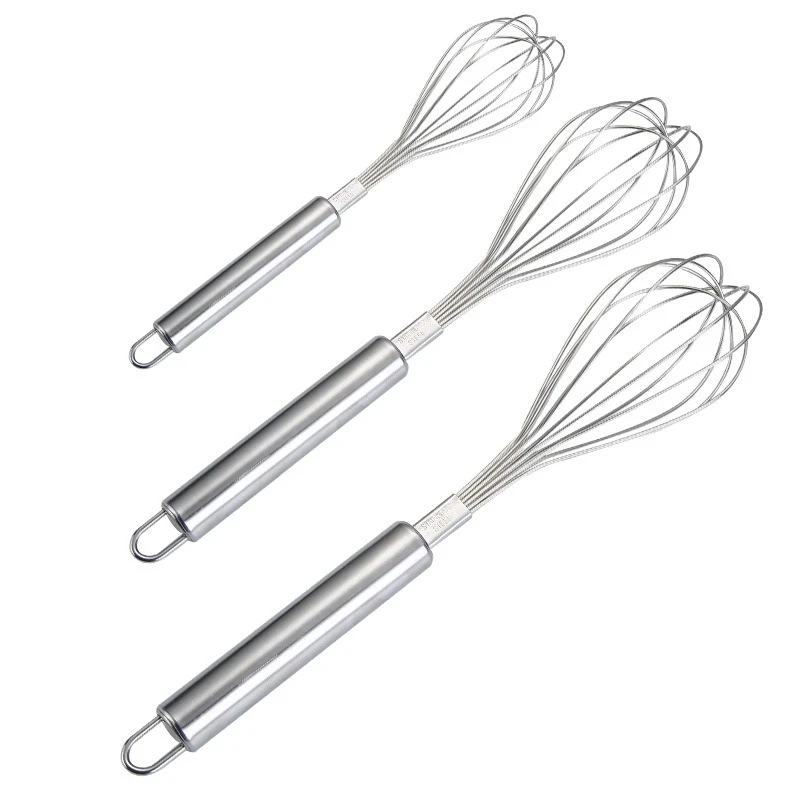 This 3-piece stainless steel whisk set is designed for efficient mixing and baking tasks.