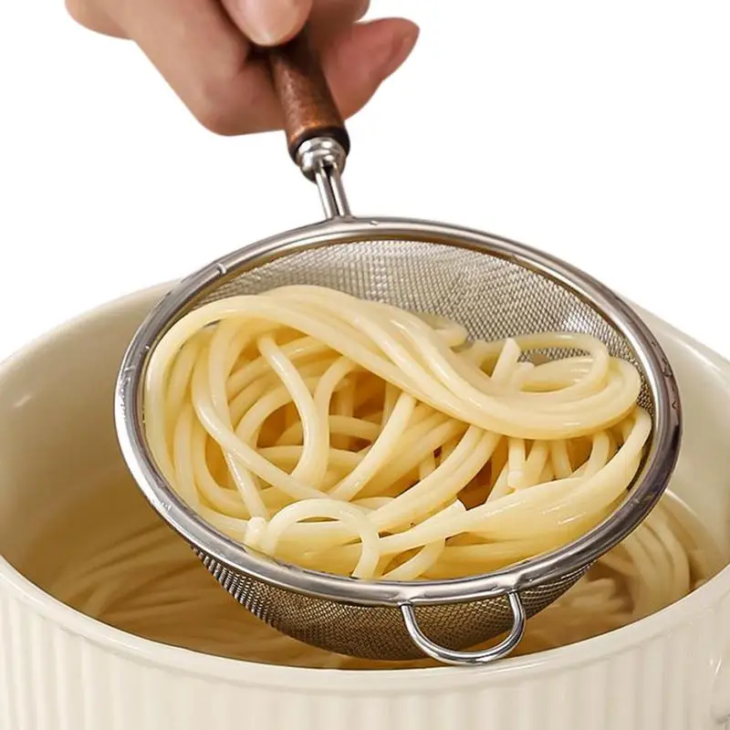 The fine mesh effectively filters oil, juice residues, flour, and other ingredients.