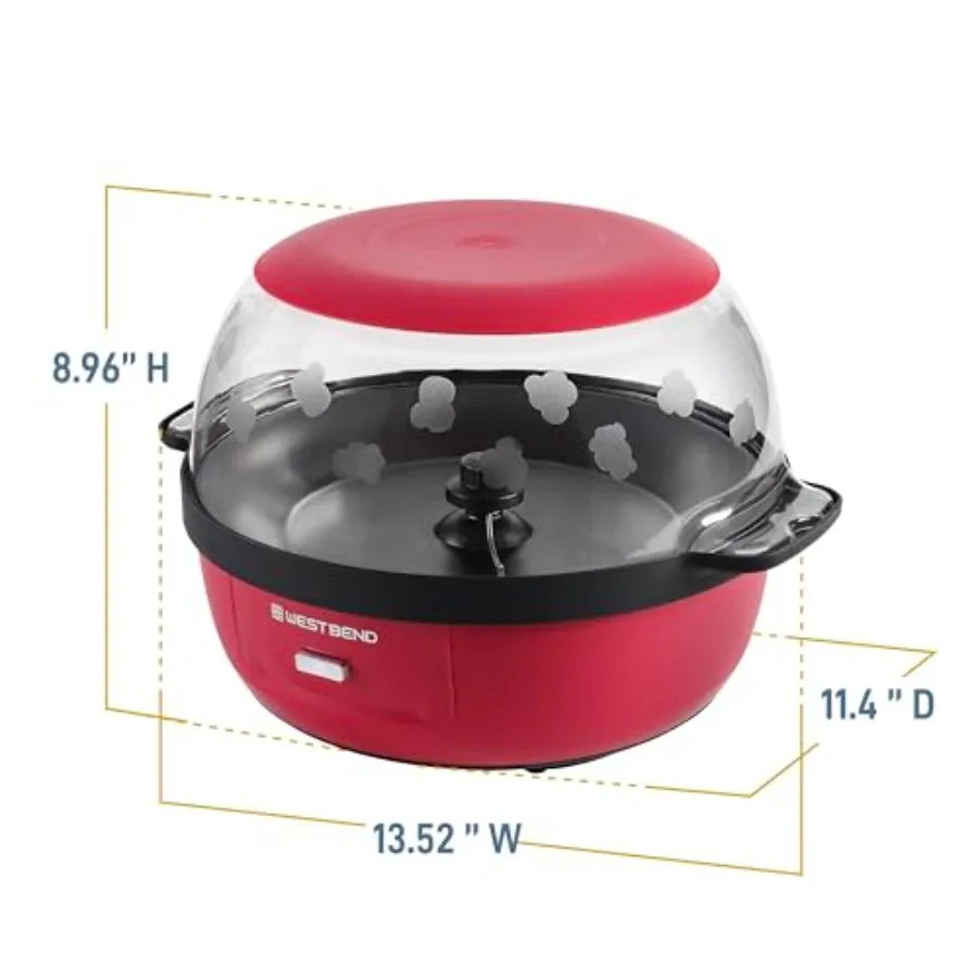 Make delicious, theater-style popcorn at home with this Stir Crazy Popcorn Maker. Featuring a hot oil system, it delivers rich flavor and evenly popped kernels every time. The built-in stirring rod ensures kernels move continuously for better popping results. With a large 6-quart capacity, it’s perfect for family movie nights and gatherings. The clear lid doubles as a serving bowl for added convenience. Its vibrant red design adds a fun and stylish touch to your kitchen. Easy to use, making it great for both kids and adults. The efficient heating system provides quick and consistent performance. Simple to clean after each use for hassle-free maintenance. Enjoy fresh, flavorful popcorn anytime with this all-in-one popcorn machine.